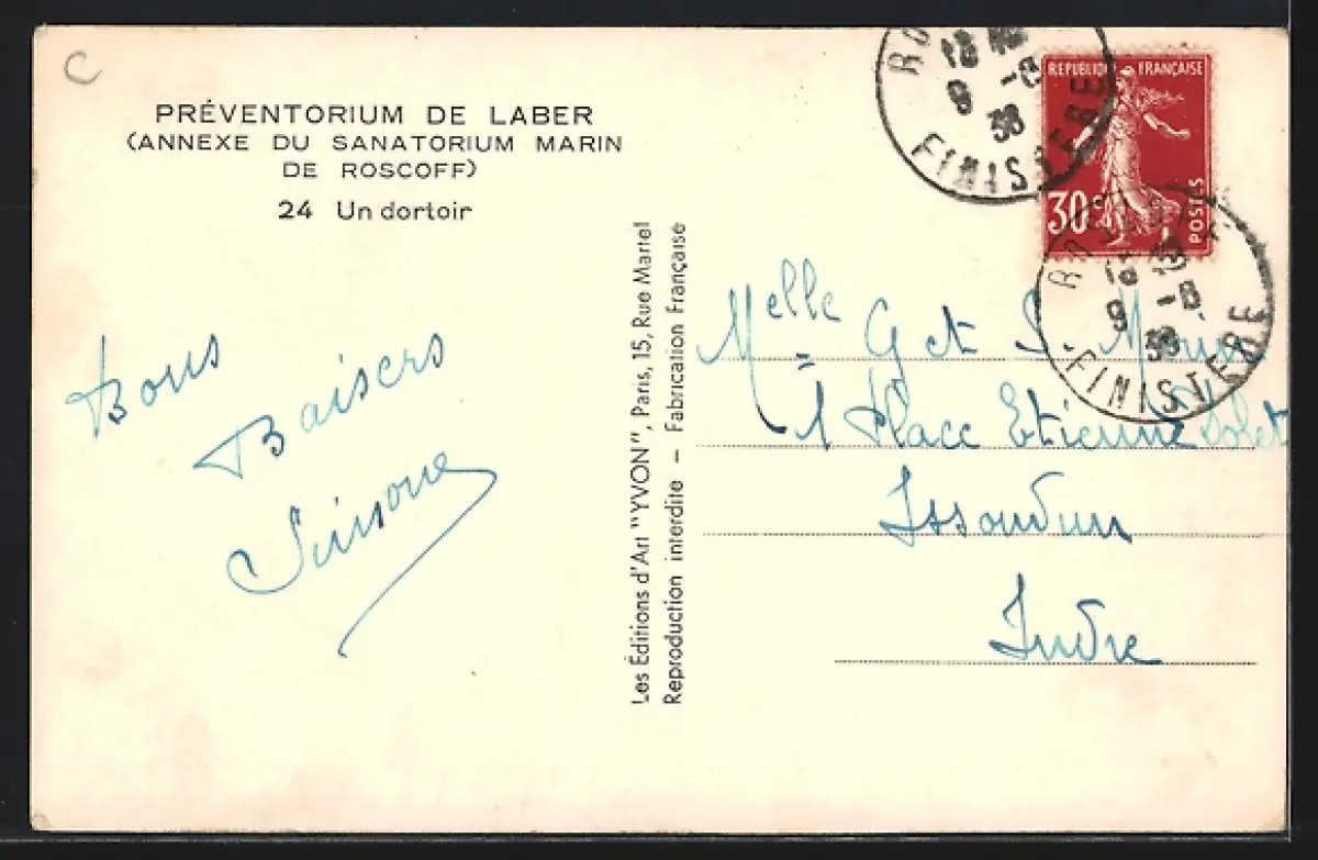 AK Roscoff, Intérieur du dortoir au Préventorium de Laber