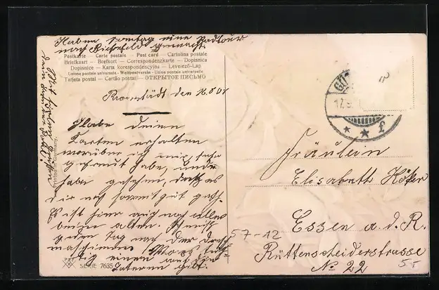 alte Ansichtskarte, gelaufen, Briefmarke entfernt, rückseitig Oberflächenschaden, guter Zustand
