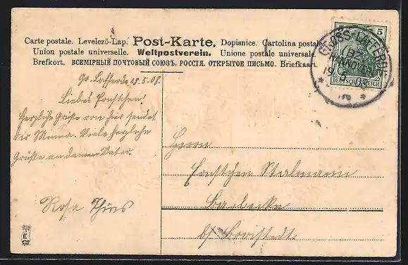 alte Ansichtskarte, gelaufen 1908, guter Zustand