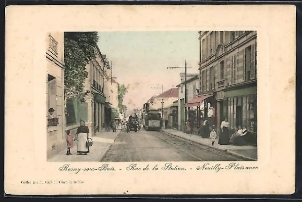 AK Rosny-sous-Bois, Rue de la Station avec tramway et passants
