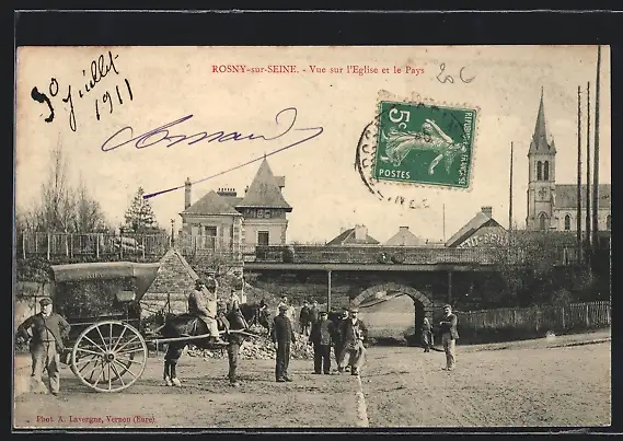 AK Rosny-sur-Seine, Vue sur l`Eglise et le Pays