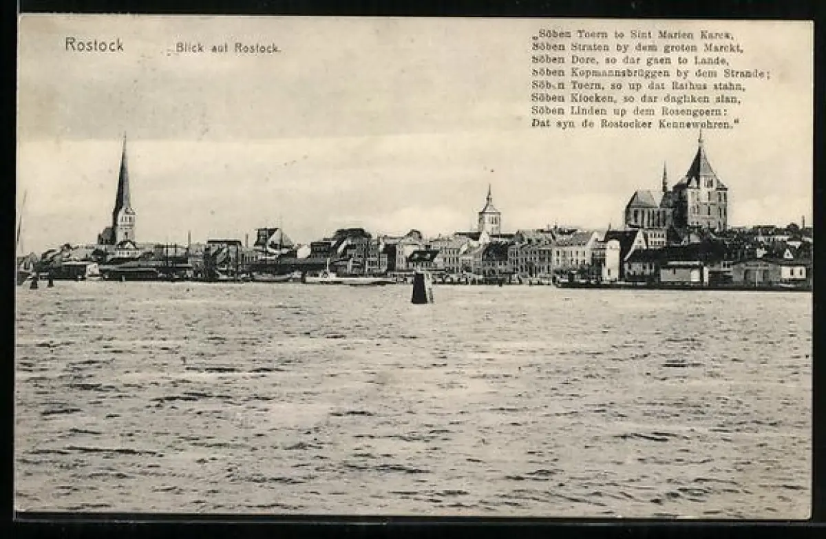 AK Rostock, Blick auf die Stadt vom Meer aus, Gedicht