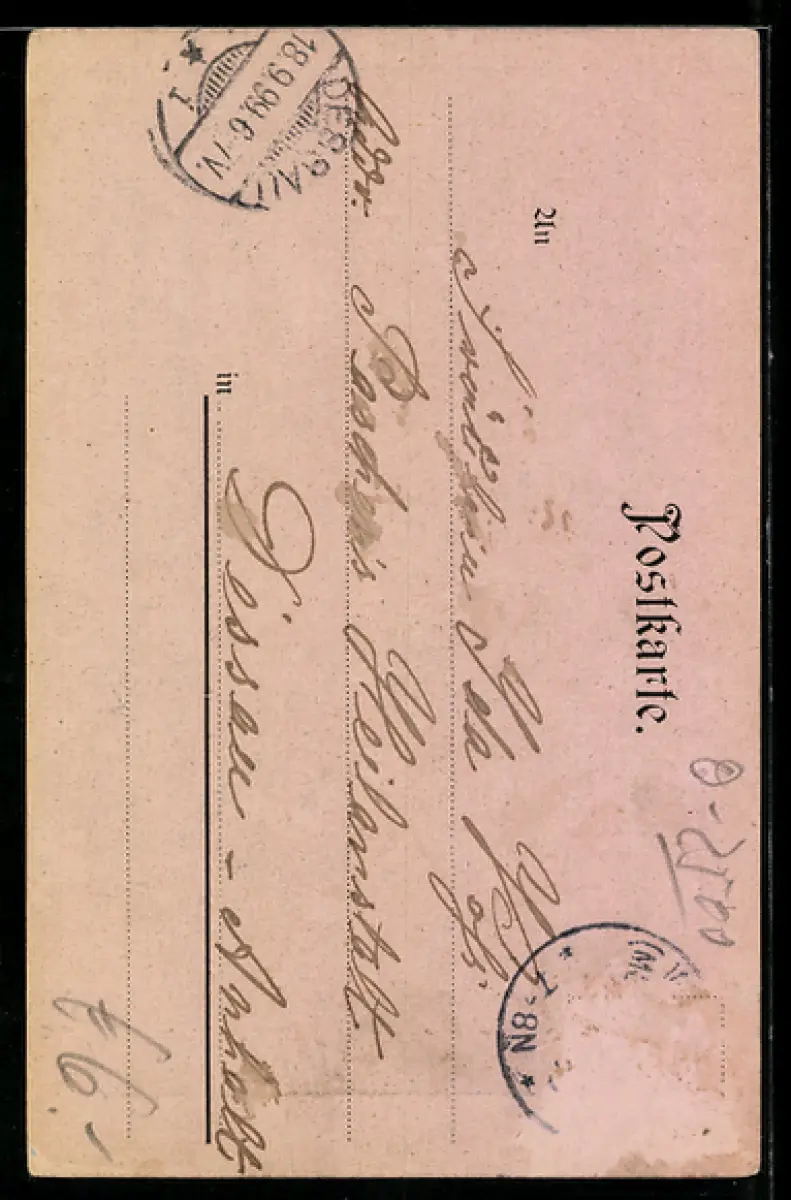 alte Ansichtskarte, gelaufen 1899, Stempelspur, guter Zustand