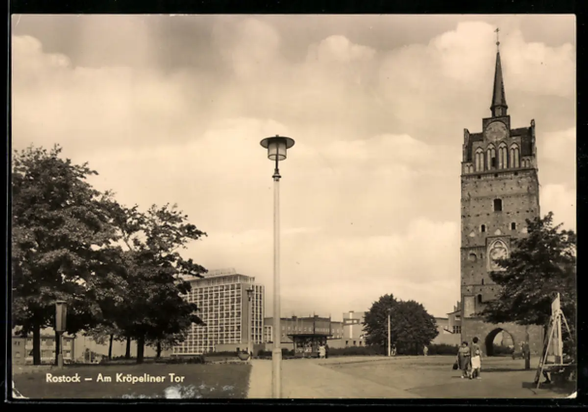 AK Rostock, Strassenpartie am Kröpeliner Tor