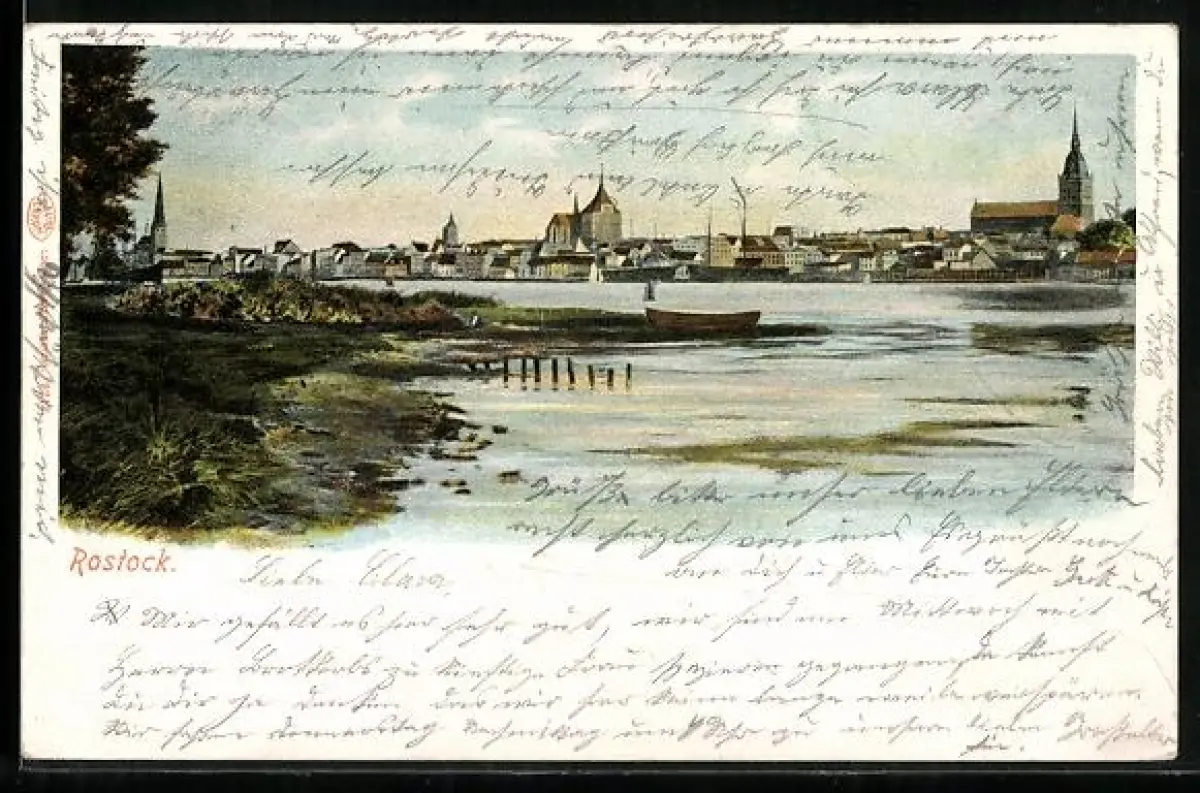 AK Rostock, Teilansicht mit Kirche