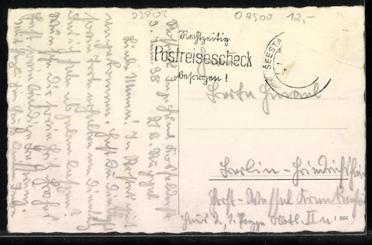 alte Ansichtskarte, gelaufen, Briefmarke entfernt, guter Zustand