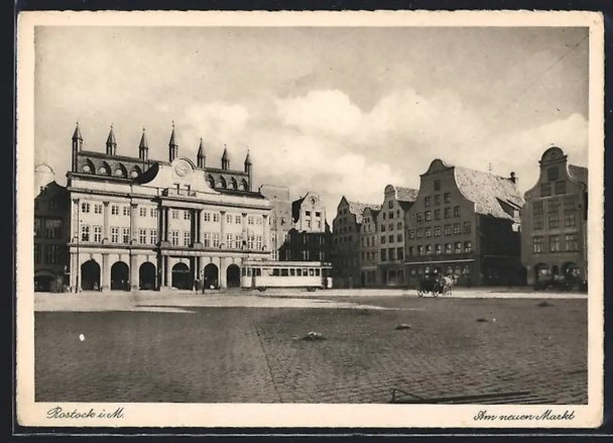 AK Rostock i. M., Am neuen Markt, Strassenbahn