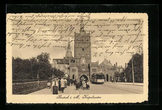 AK Rostock i. M., Kröpelinertor mit Strassenbahn
