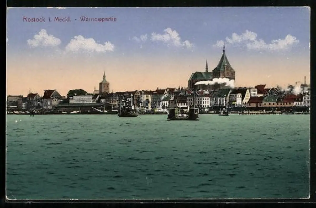 AK Rostock i. Meckl., Warnowpartie mit Dampfschiffen