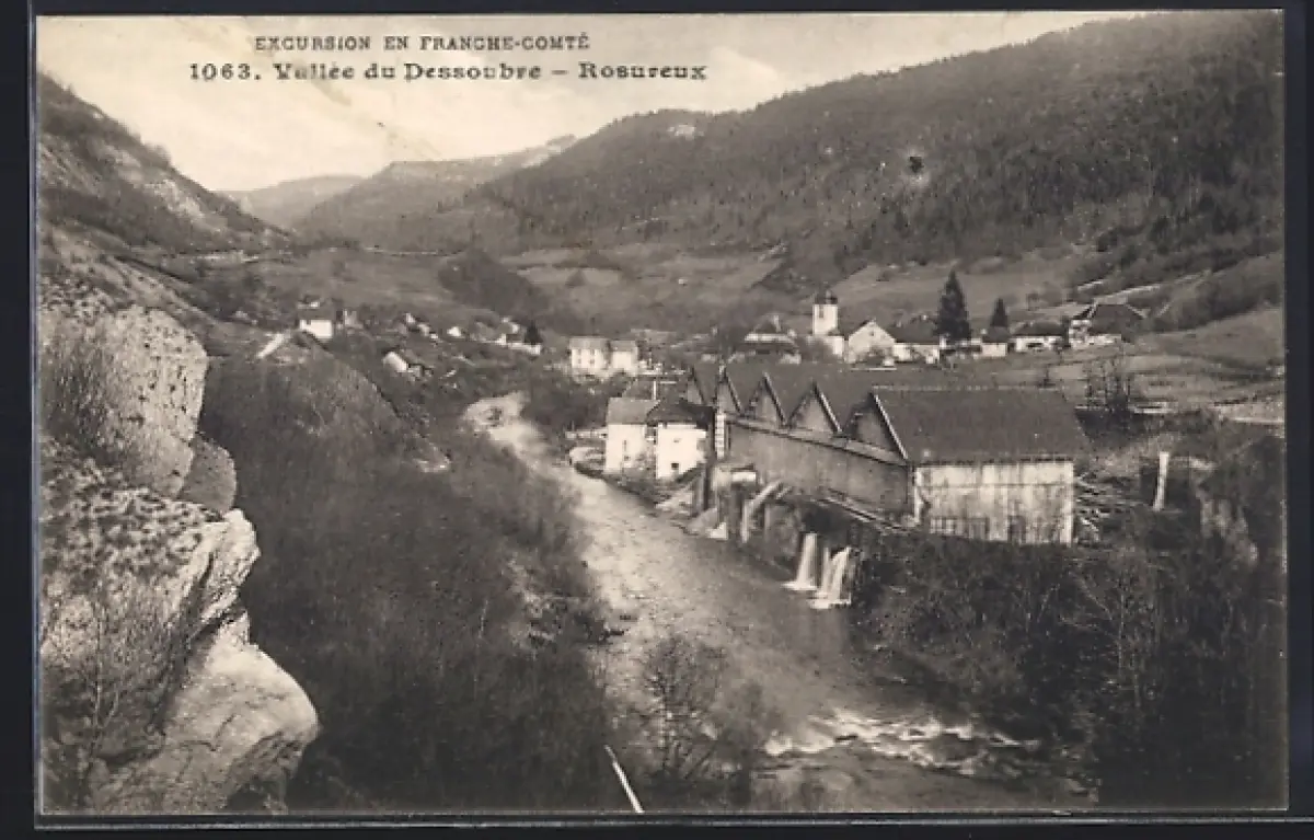AK Rosureux, Vallée du Dessoubre avec vue sur le village et les bâtiments industriels