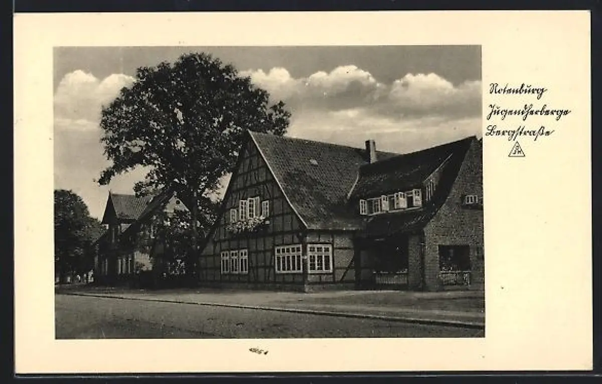 AK Rotenburg / Hannover, Strassenpartie mit Jugendherberge in der Leystrasse