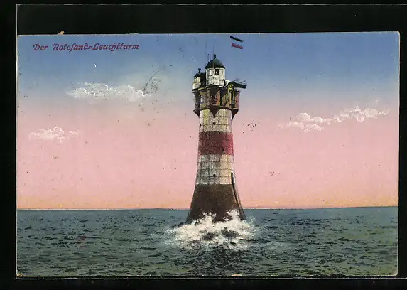 AK Roter Sand Leuchtturm mit schwarz-weiss-roter Flagge