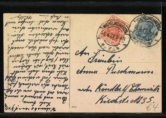 alte Ansichtskarte, gelaufen 1921, Stempelspur, guter Zustand