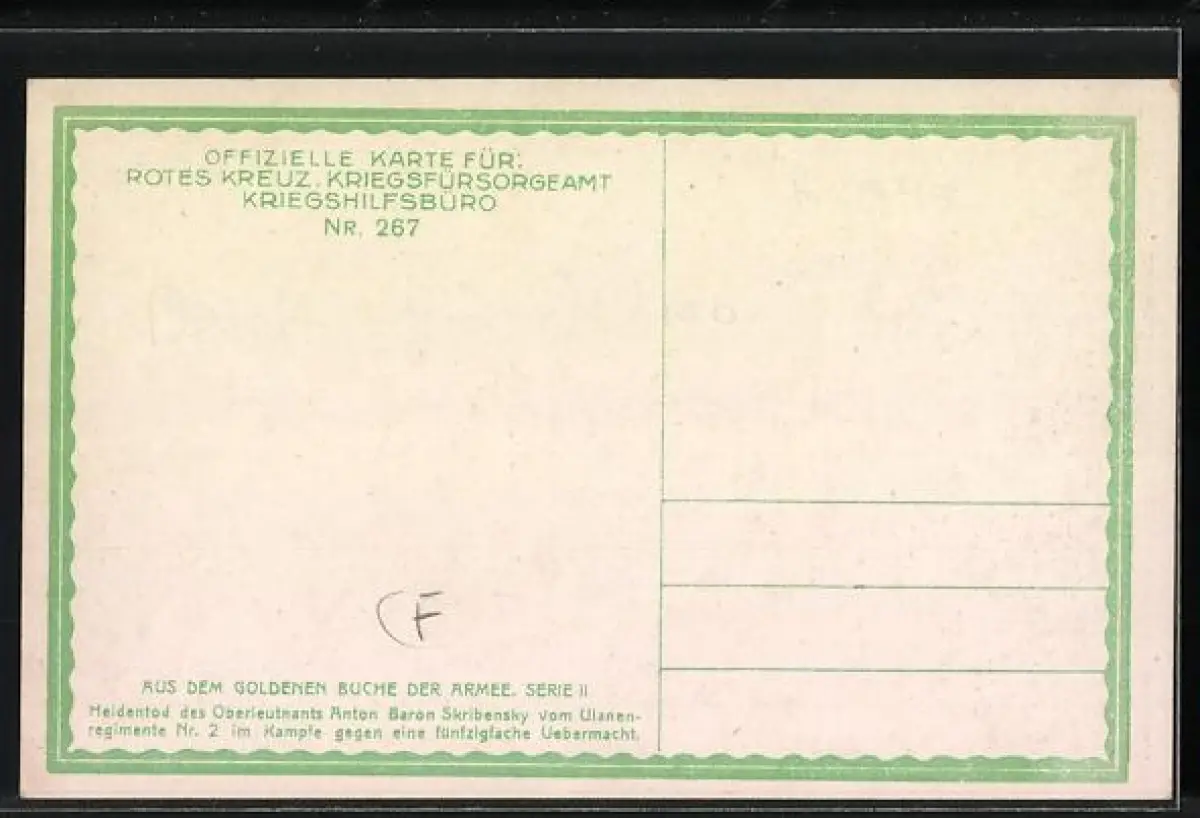 AK Rotes Kreuz Nr. 267, Heldentod des Oberleutnants Skribensky von Ulanen-Regt. 2