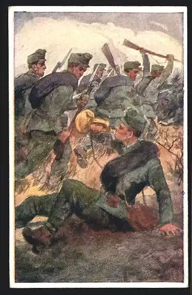 AK Rotes Kreuz Nr. 355: Hornist Kovacs bei einem überraschenden feindlichen Angriff