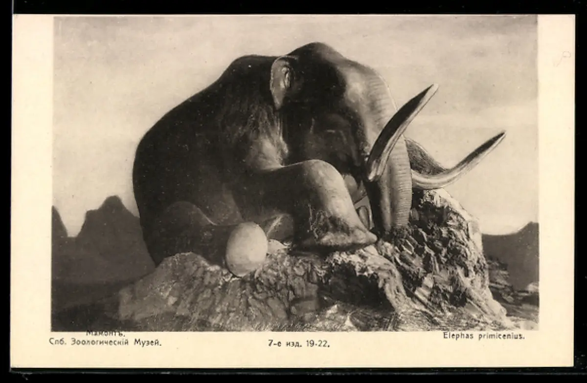 AK Rotes Kreuz Russland, Elephas primicenius