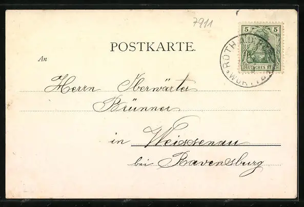 AK Roth a. d. Roth, Generalansicht mit der Stadt mit der Reichsabtei