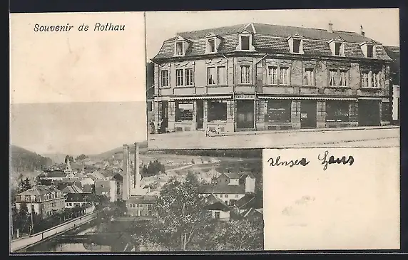 AK Rothau, Geschäftshaus Emil Zittel, Ortsansicht