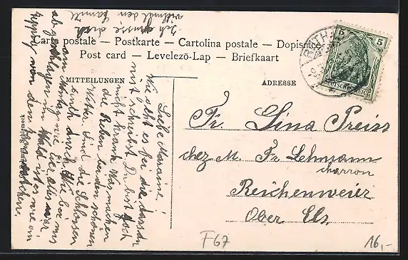 alte Ansichtskarte, gelaufen 1911, guter Zustand