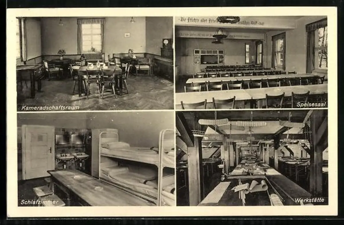 AK Rothenburg / Tauber, Speisesaal, Werkstätte und Schlafzimmer in der Reichsmodellbauschule