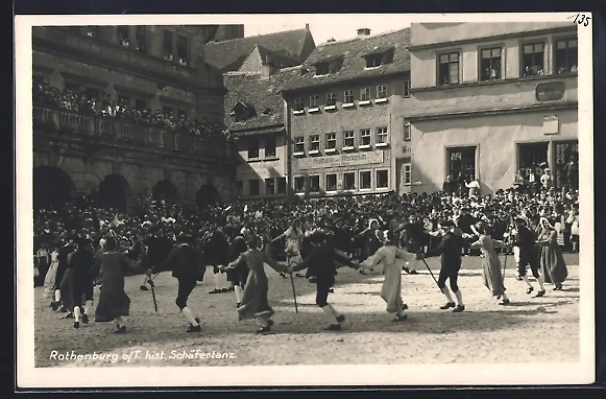 AK Rothenburg o. T., Historischer Schäfertanz vor Gasthaus zum Marktplatz