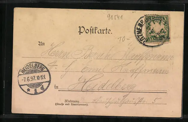 alte Ansichtskarte, gelaufen 1897, guter Zustand