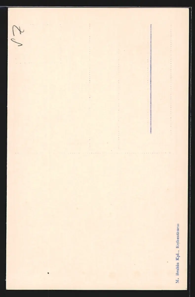Personenbezogene Daten auf der Rückseite der Karte wurden durch blauen Textmarker unkenntlich gemacht. Die blauen Stellen sind auf die Vorderseite durchgeweicht und wirken sich negativ auf das Postkartenfoto aus