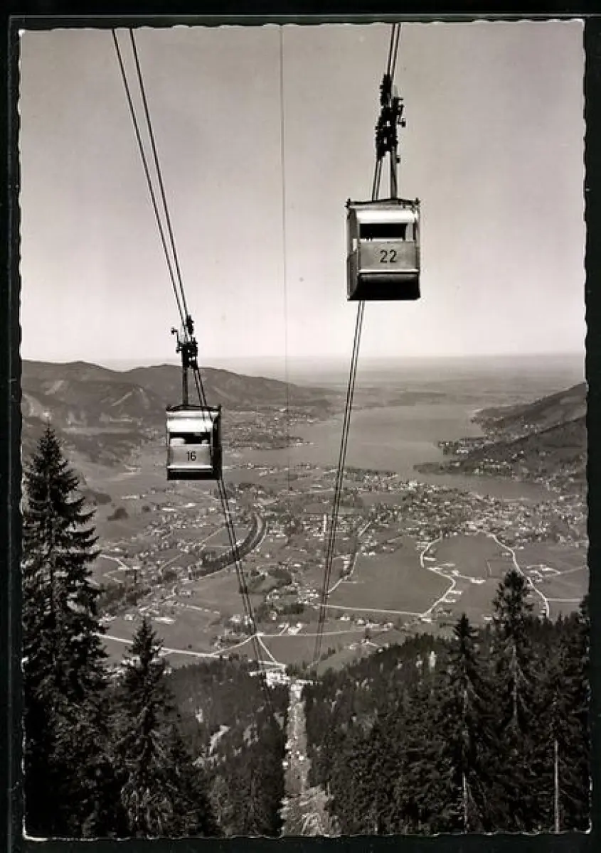 AK Rottach-Egern, Wallbergbahn mit Blick auf das Tegernseer Tal