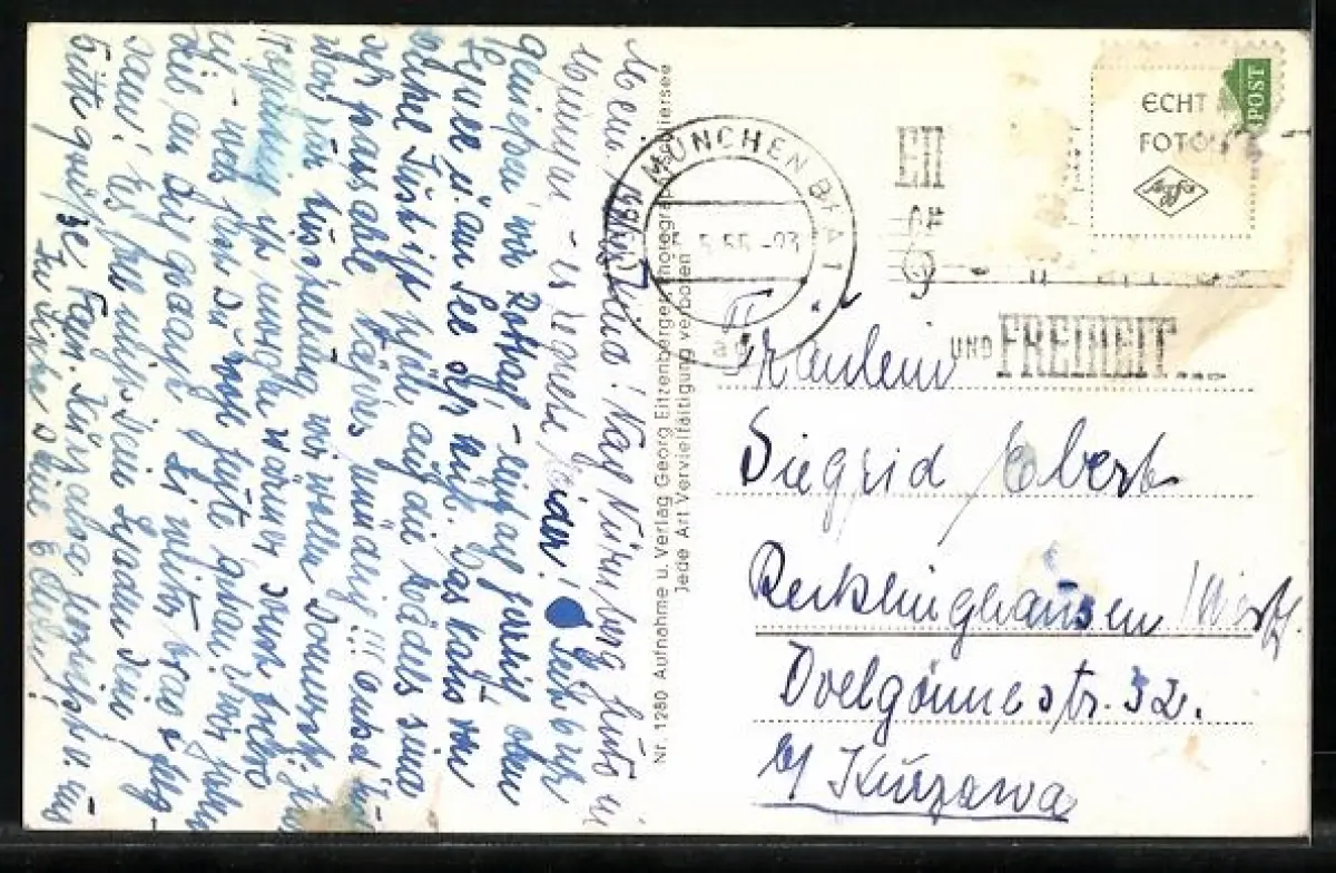 alte Ansichtskarte, gelaufen 1955, Briefmarke entfernt, guter Zustand
