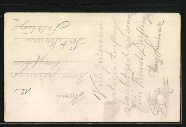 Personenbezogene Daten auf der Rückseite der Karte wurden durch blauen Textmarker unkenntlich gemacht. Die blauen Stellen sind auf die Vorderseite durchgeweicht und wirken sich negativ auf das Postkartenfoto aus