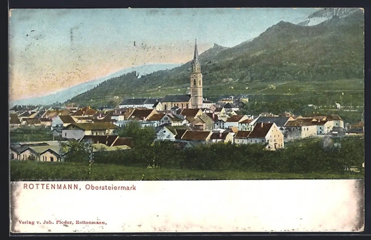 AK Rottenmann, Ortsansicht mit Kirche und Umgebung