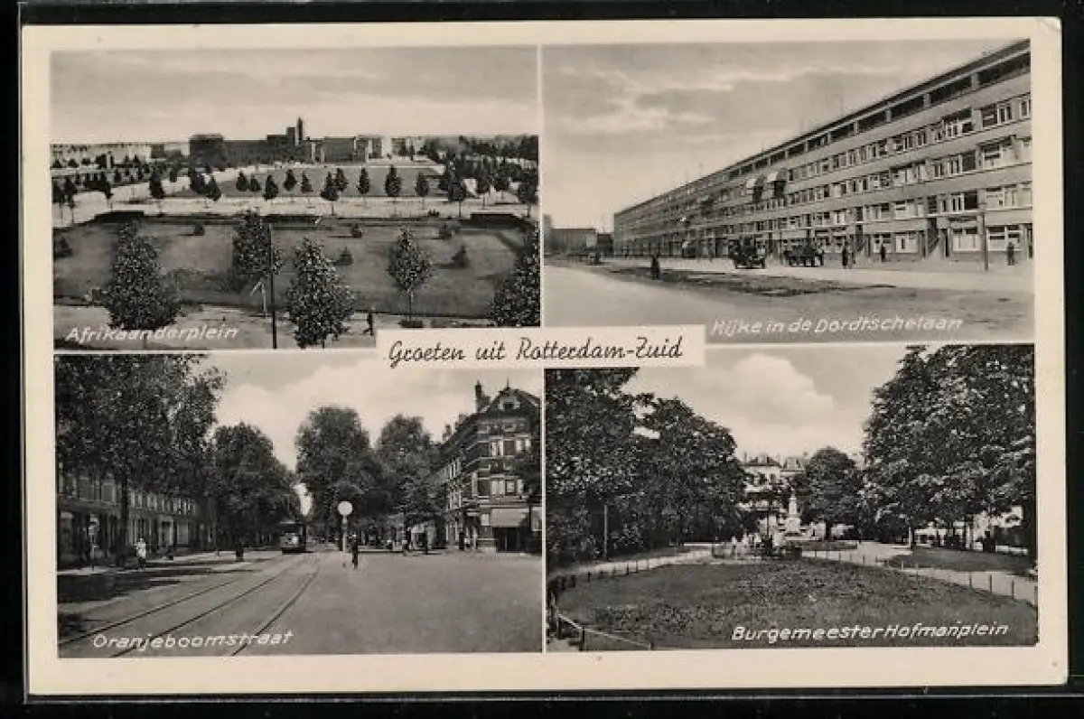 AK Rotterdam, Afrikaanderplein, Oranjeboomstraat, Strassenbahn