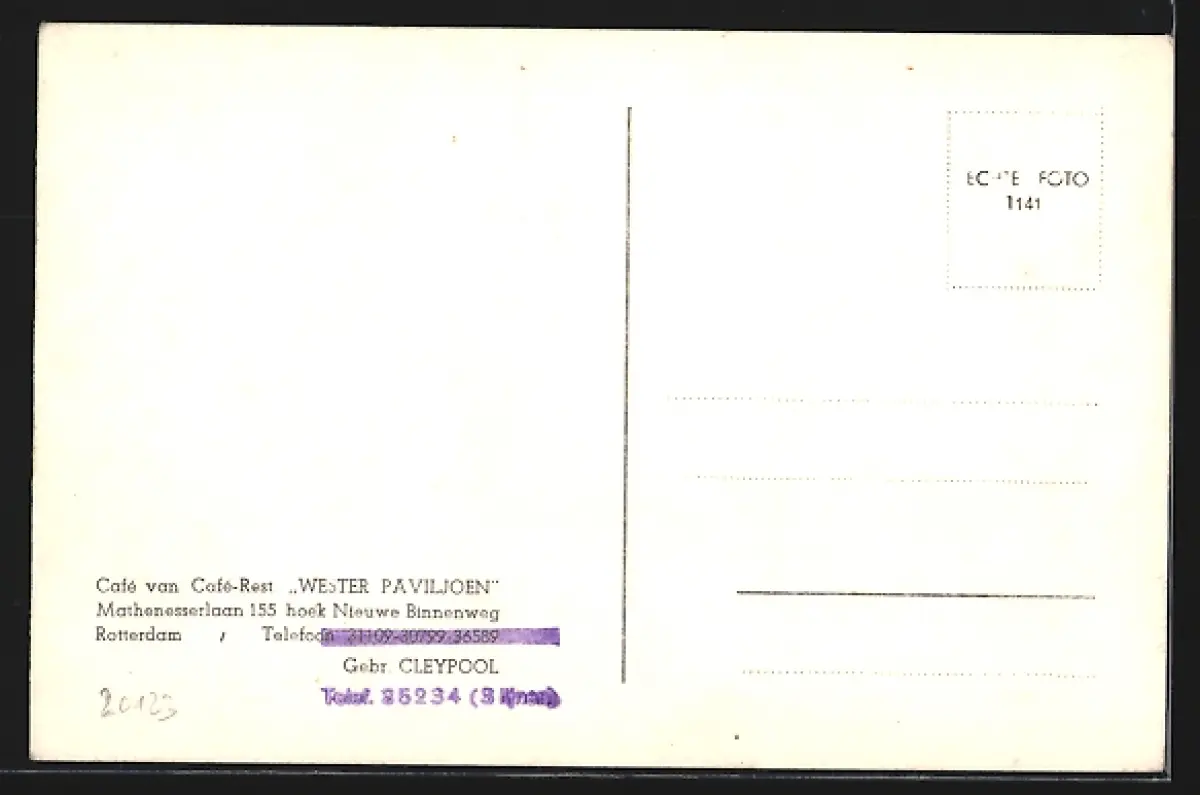 AK Rotterdam, Café Wester Paviljoen, Marthenesserlaan 155