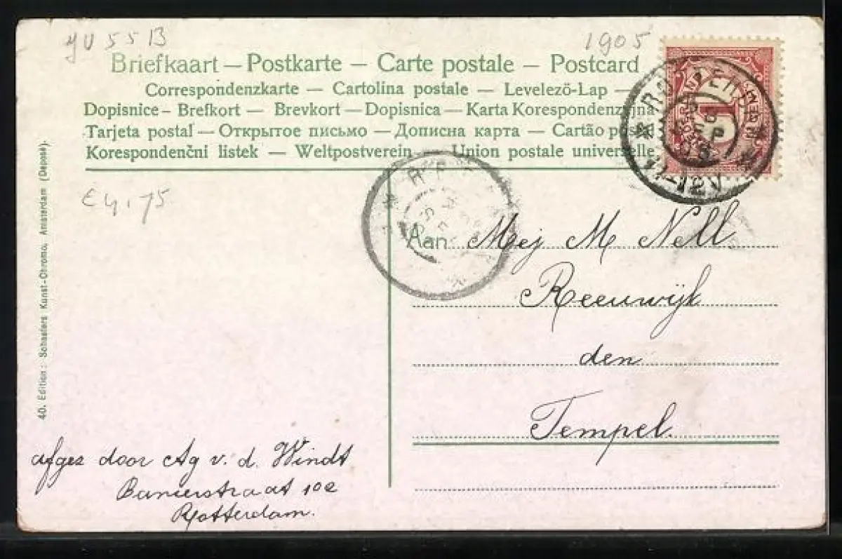 alte Ansichtskarte, gelaufen 1908, Eckknick re. oben, Abriebspur re. unten, guter Zustand
