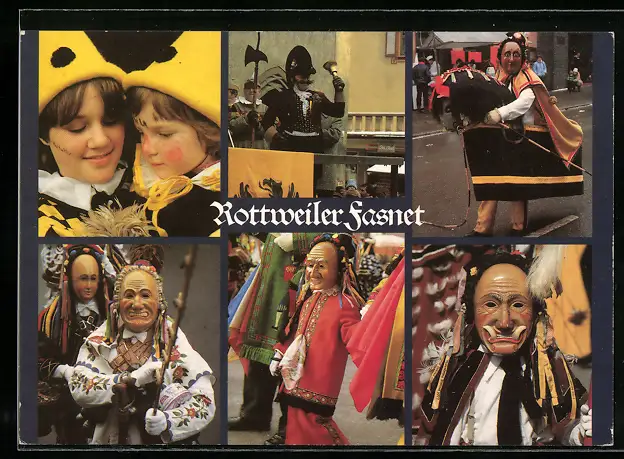 AK Rottweil, Fasnet, Narrensamen, Ausscheller, Brieler Rössle und Kinder-Federehannes, Fasching
