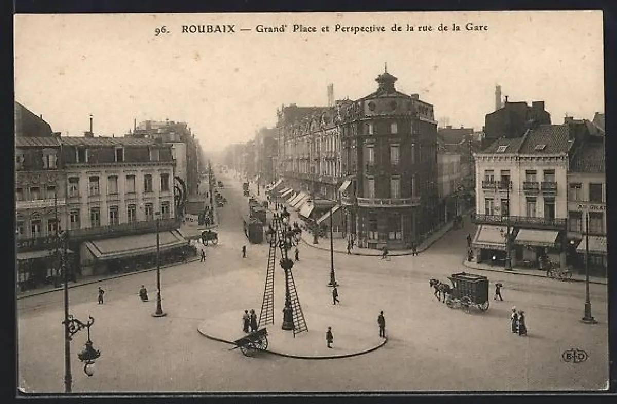 AK Roubaix, Grand` Place et Perspective de la rue de la Gare