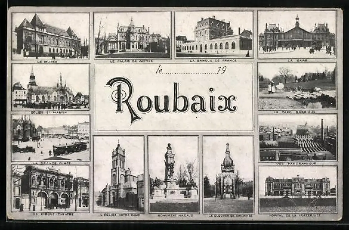 AK Roubaix, Le Musee, Eglise St. Martin, La Grande Place, Le Cirque - Theatre, L`Eglise Notre-Dame, Monument Nadaud