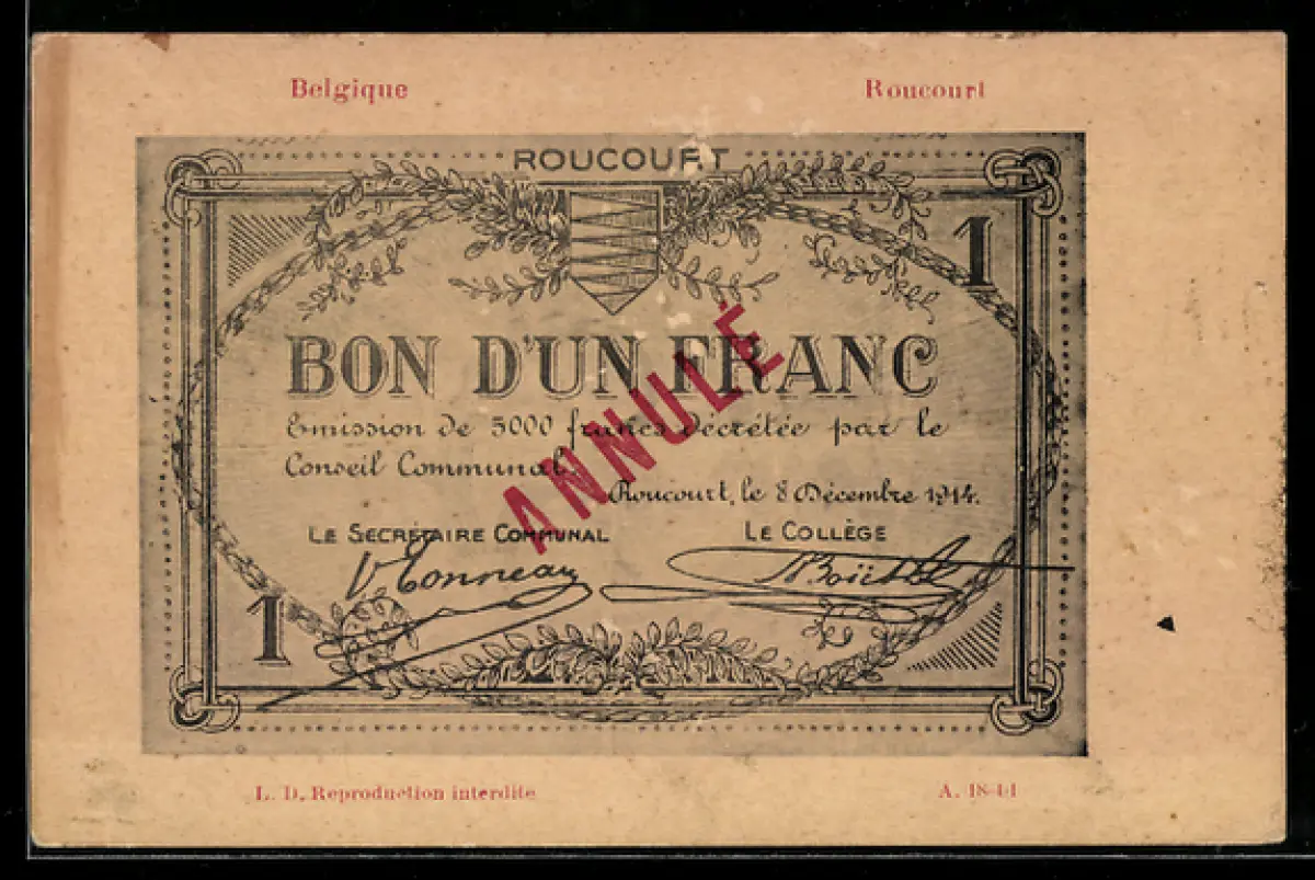 AK Roucourt, Belgischer Geldschein