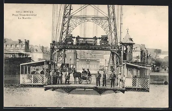 AK Rouen, Pont Transbordeur, La Nacelle, Schwebefähre, Pferdekutsche