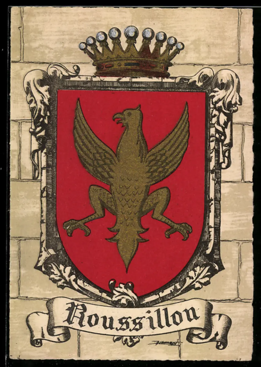 AK Roussillon, Wappen auf Mauer-Hintergrund