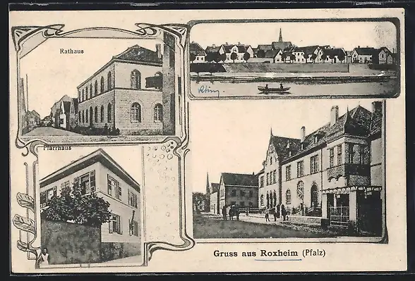 AK Roxheim /Pfalz, Rathaus, Pfarrhaus, Strassenpartie