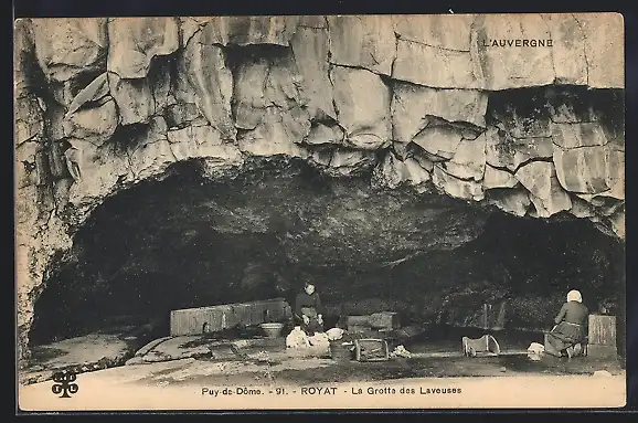 AK Royat, la Grotte des Laveuses, Waschfrauen waschen in der Grotte