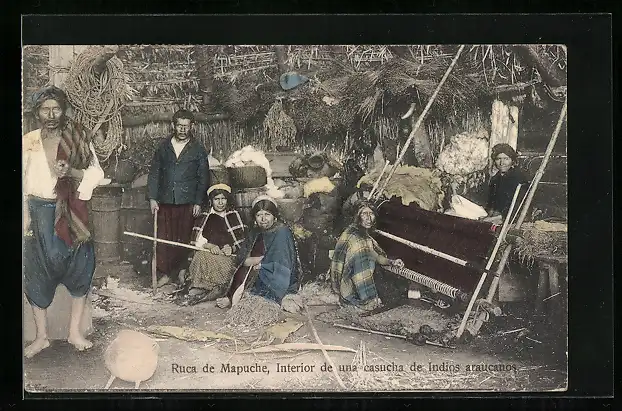 AK Ruca de Mapuche, Interiro de una casucha de Indios araucanos
