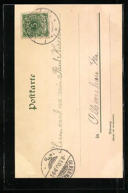 alte Ansichtskarte, gelaufen 1900, Stempelspur, guter Zustand