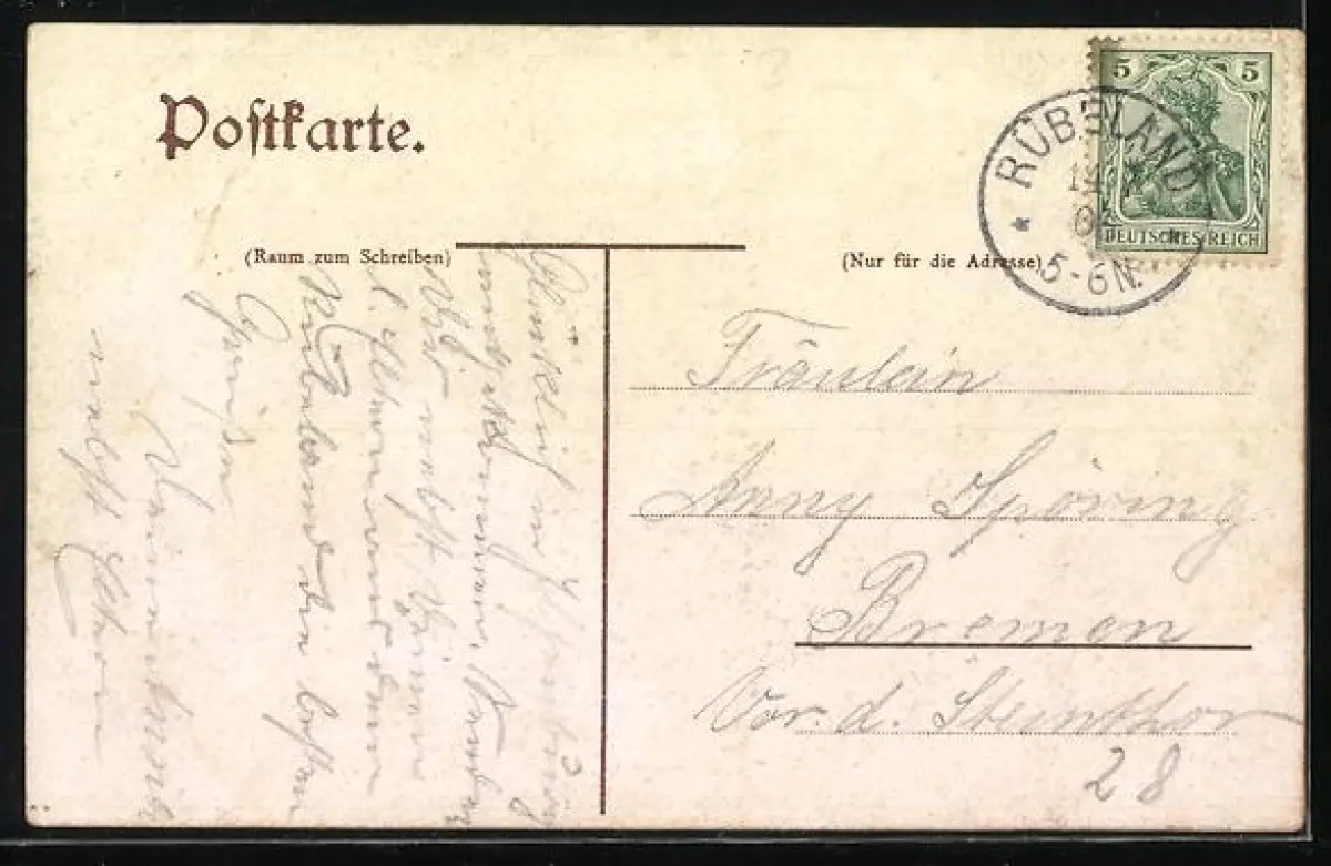 alte Ansichtskarte, gelaufen 1908, Eckknick li. oben, guter Zustand