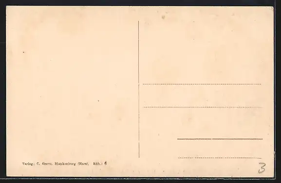 Personenbezogene Daten auf der Rückseite der Karte wurden durch blauen Textmarker unkenntlich gemacht. Die blauen Stellen sind auf die Vorderseite durchgeweicht und wirken sich negativ auf das Postkartenfoto aus