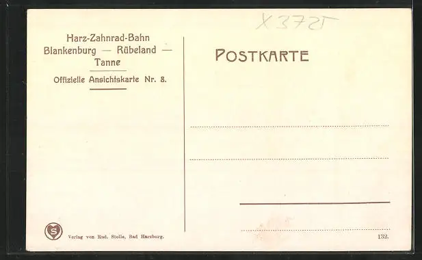 Personenbezogene Daten auf der Rückseite der Karte wurden durch blauen Textmarker unkenntlich gemacht. Die blauen Stellen sind auf die Vorderseite durchgeweicht und wirken sich negativ auf das Postkartenfoto aus
