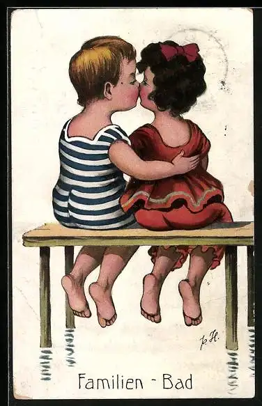 AK Rückenansicht von Kinderpaar im Badeanzug