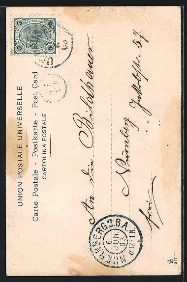 alte Ansichtskarte, gelaufen 1903, guter Zustand