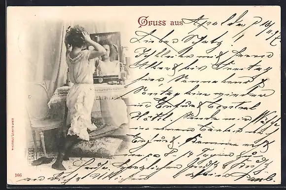 AK Rückenansicht von junger Frau vor dem Spiegel